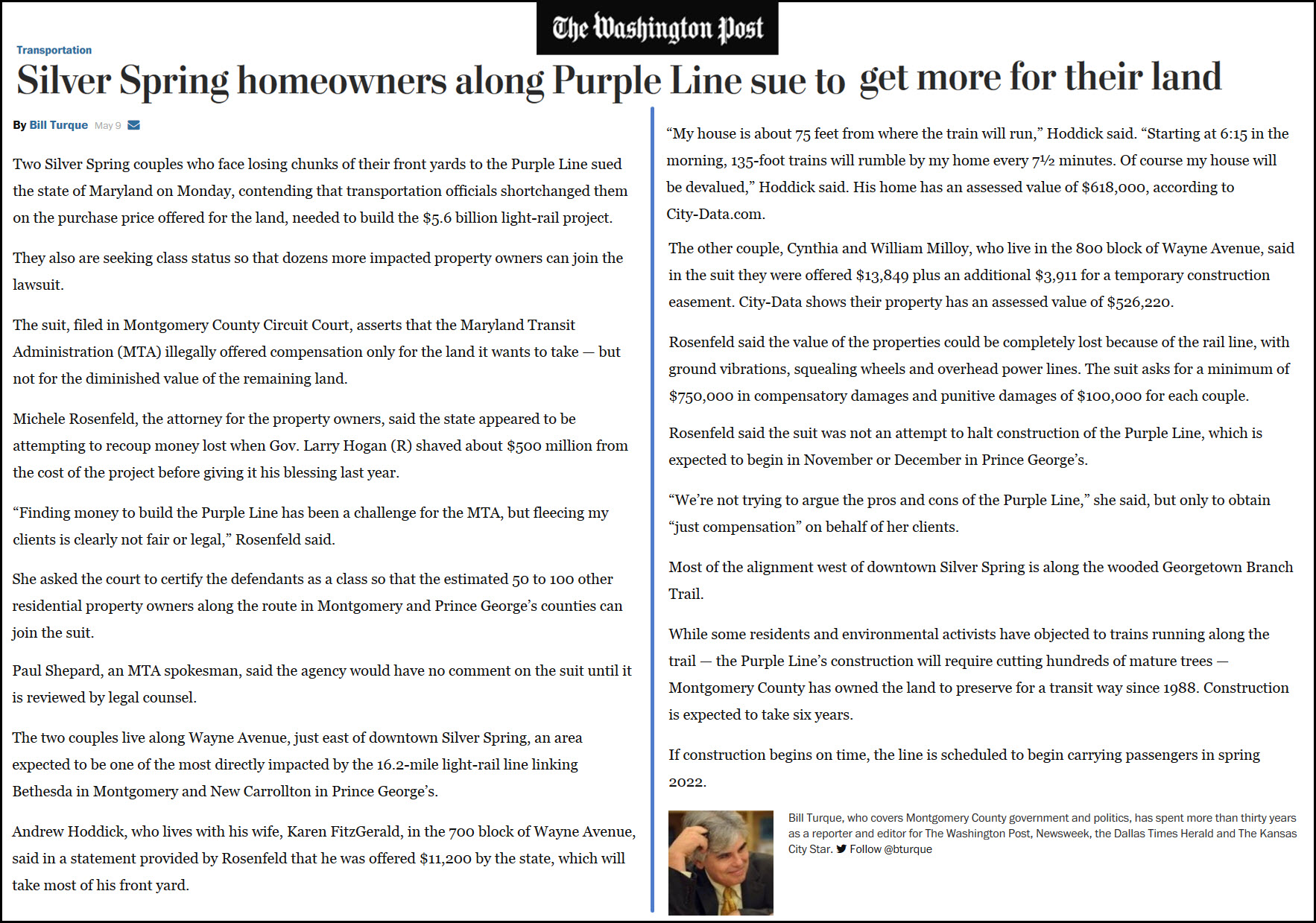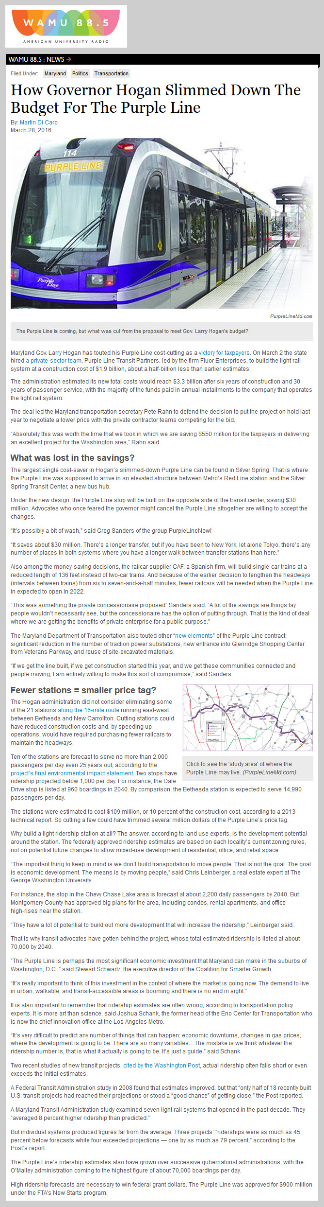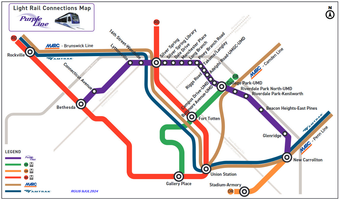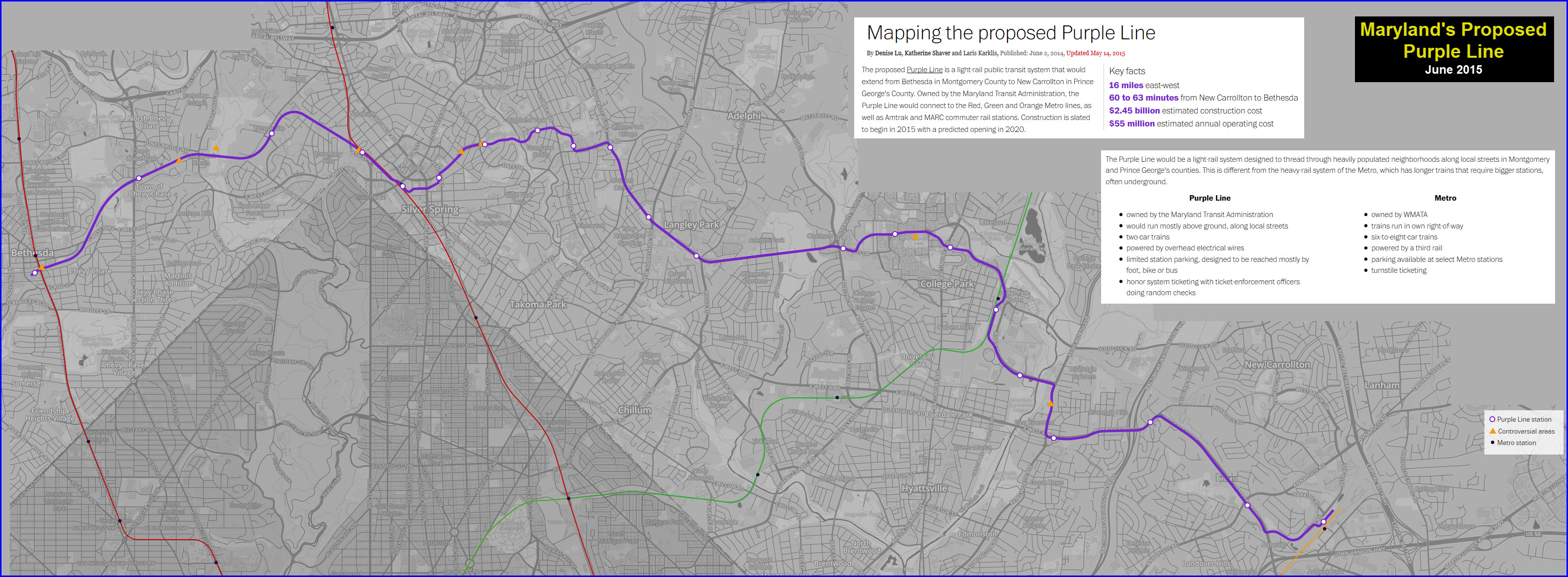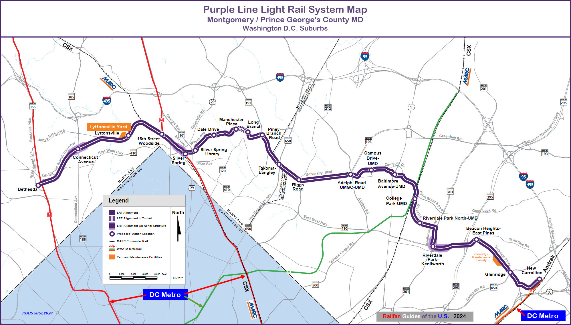 From Wikipedia: The Purple Line is a 16.2-mile (26.1 km) light rail line being built to link