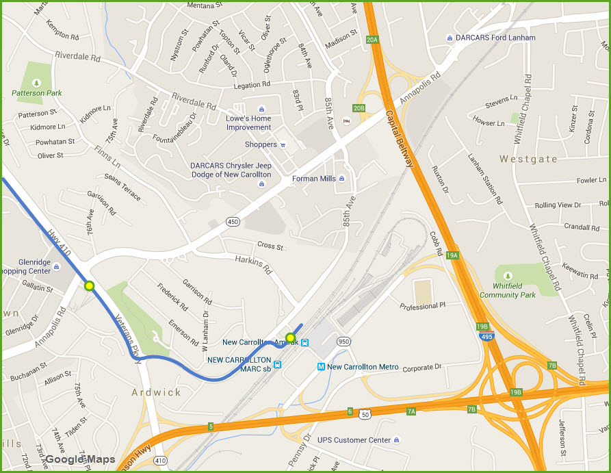 located along Veteran's Hwy/410, up to MD 450/Annapolis Rd. The Maryland MTA