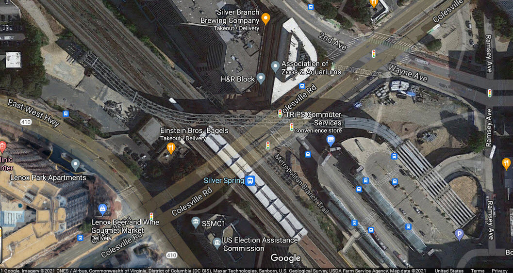 Silver Spring: Two light rail stops along the DC Metro Red Line and MARC stations