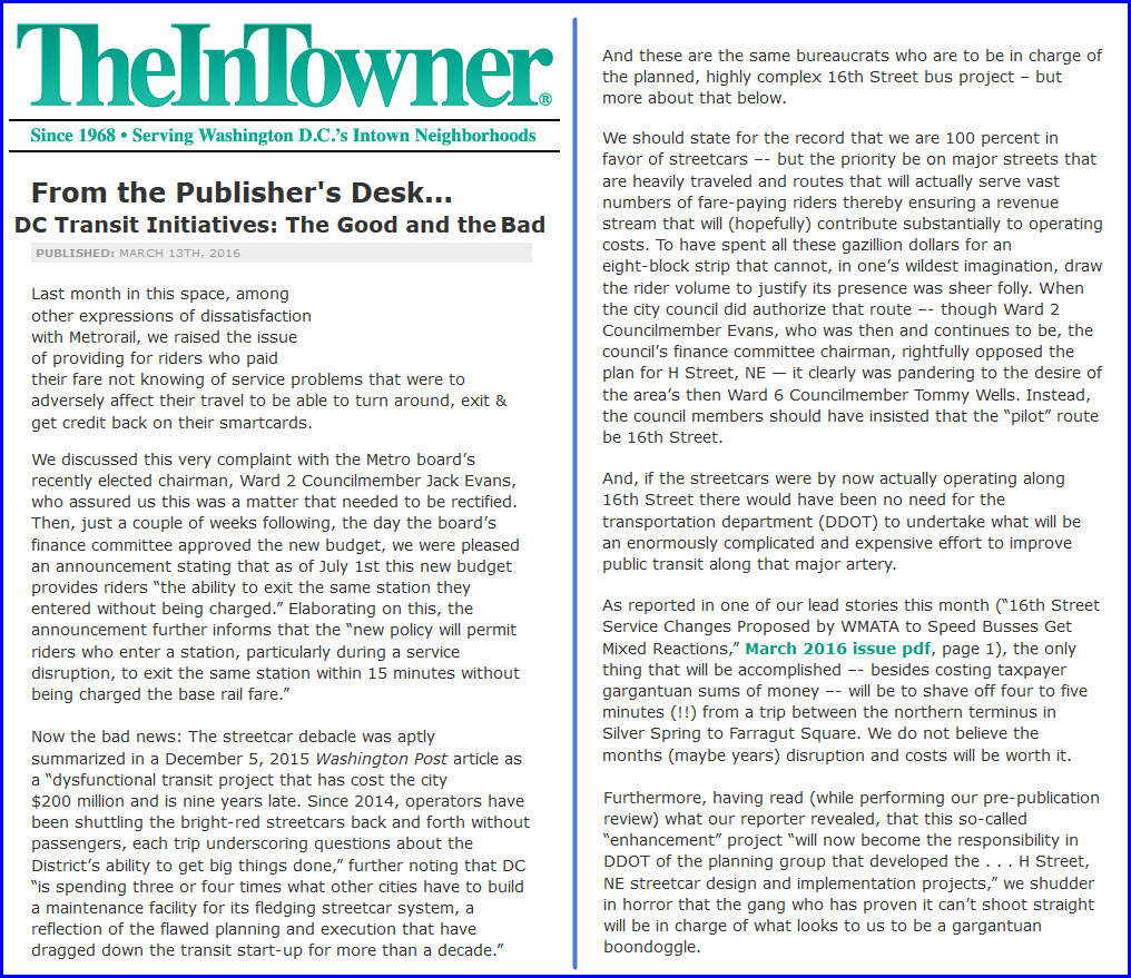 DC Streetcar. The author criticizes the maintenance facility, and the route