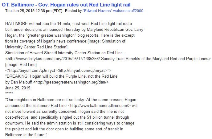 80's, the Maryland MTA wanted to extend the heavy rail system from