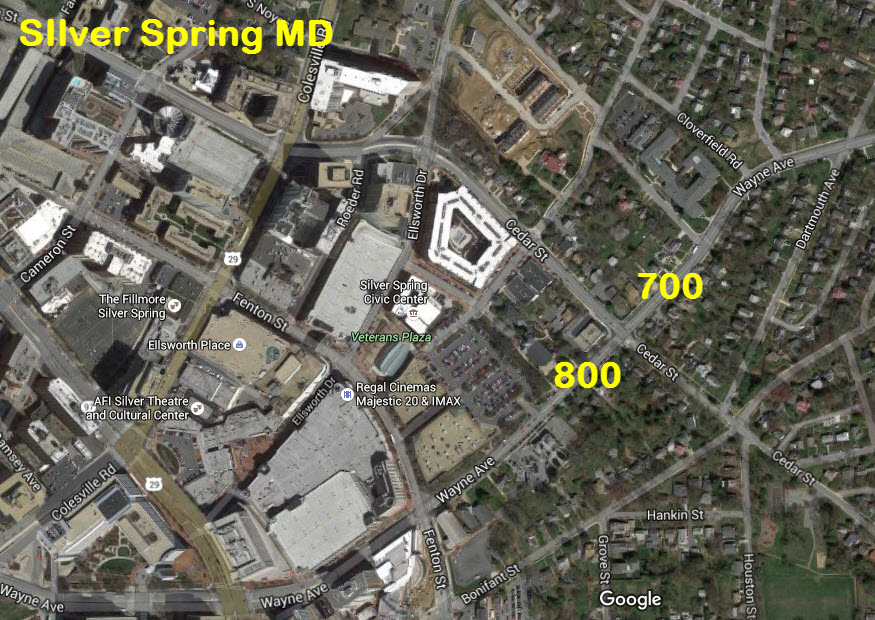 several Maryland suburbs of Washington, D.C.: Bethesda, Silver Spring,