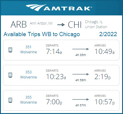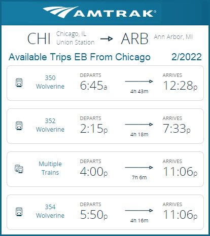 slated for 12:29pm and 7:17pm. The EB's coming thru Ann Arbor are