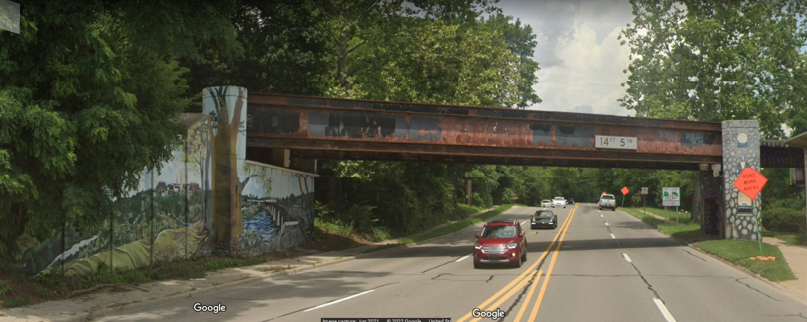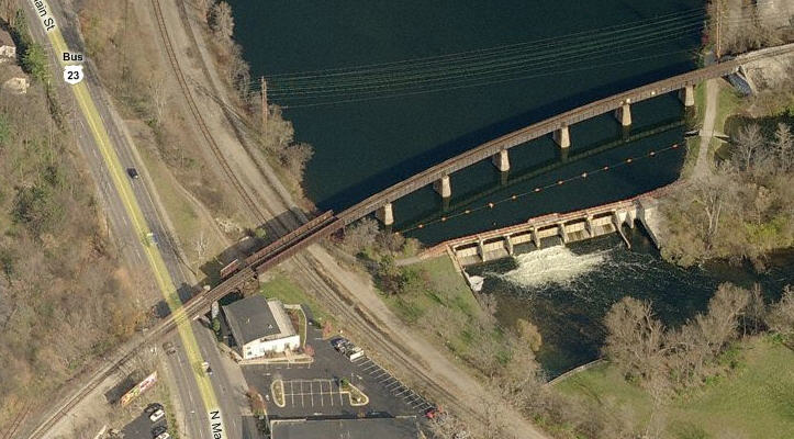 Crosses the river adjacent to where Business 23 goes over the river and railroad.