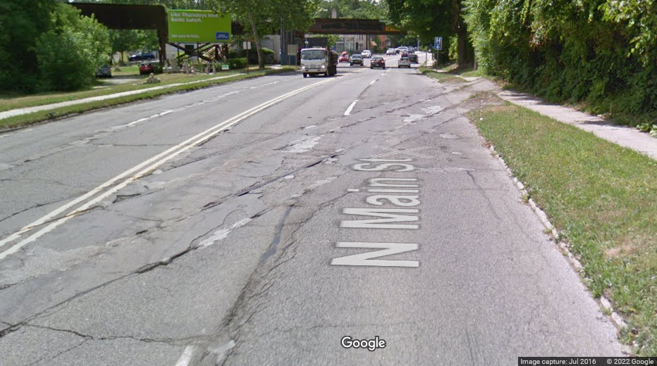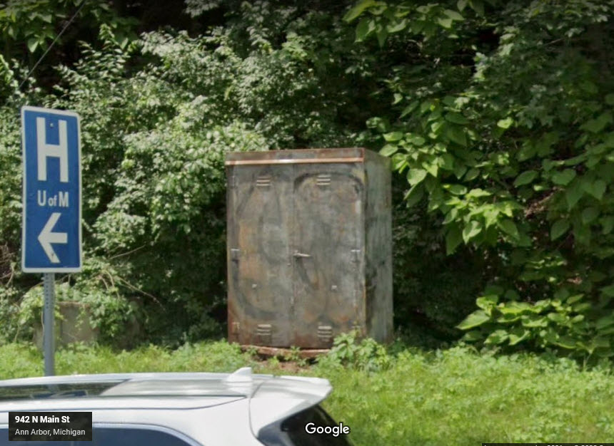 out, but the equipment cabinet for the Main St crossing still stands off to the side of the road.