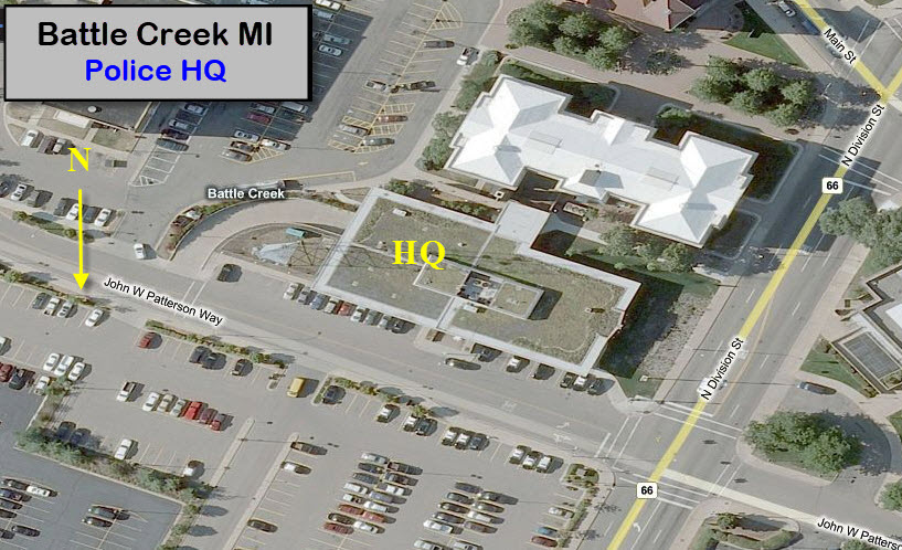 The Battle Creek police headquarters is at North Division St and John W Patterson Way.