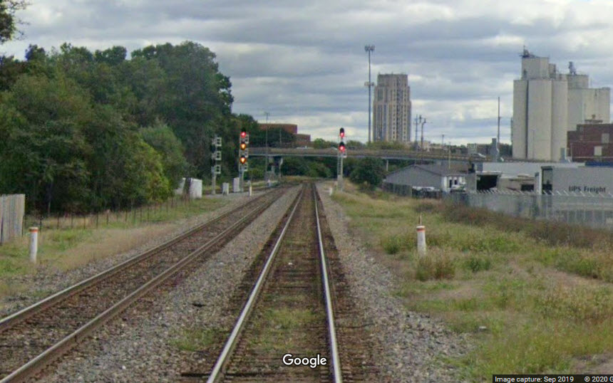 Also note, on the left side of the shot below, is the Amtrak station, and to