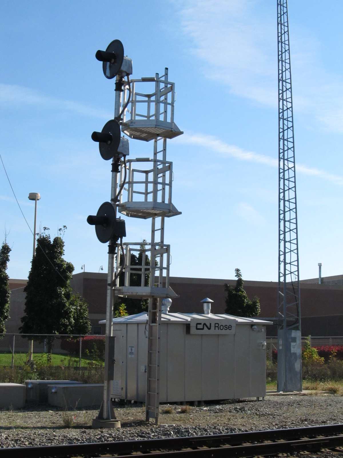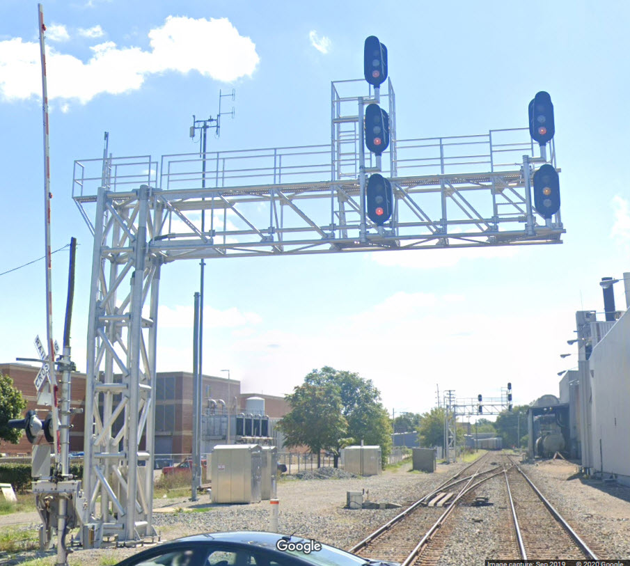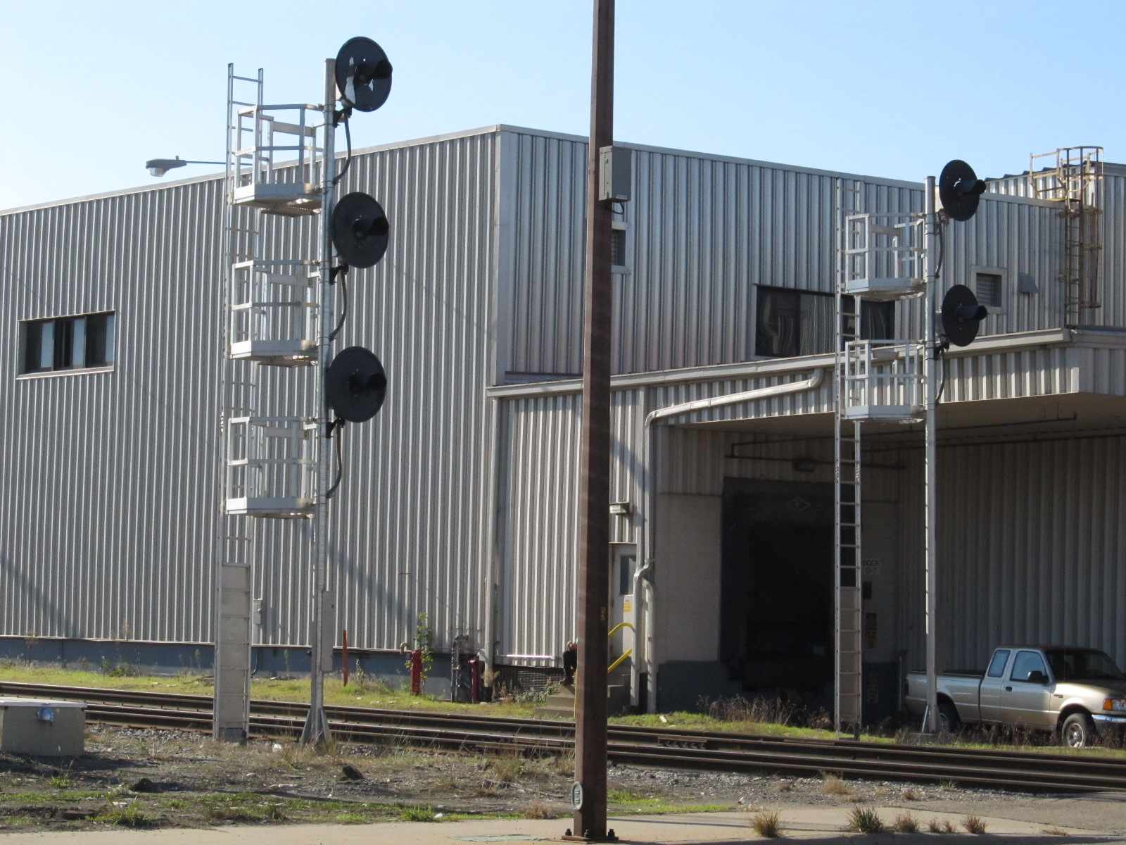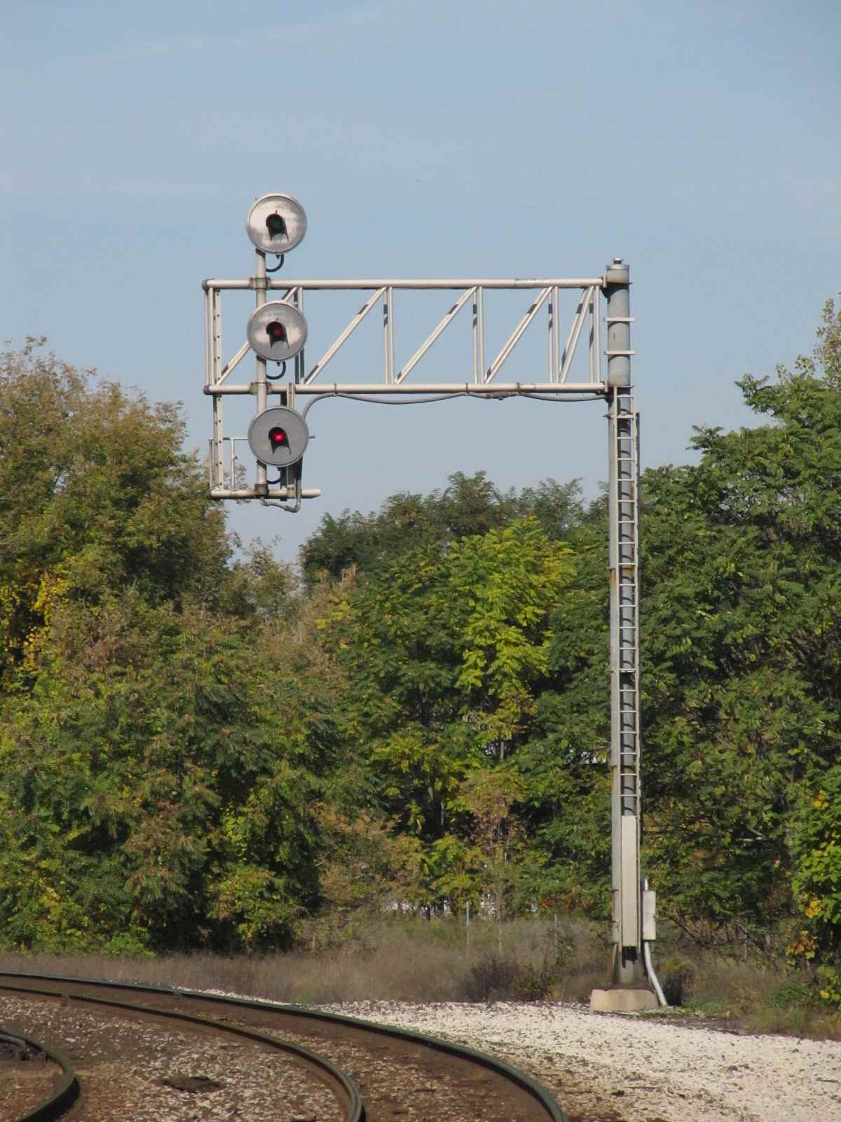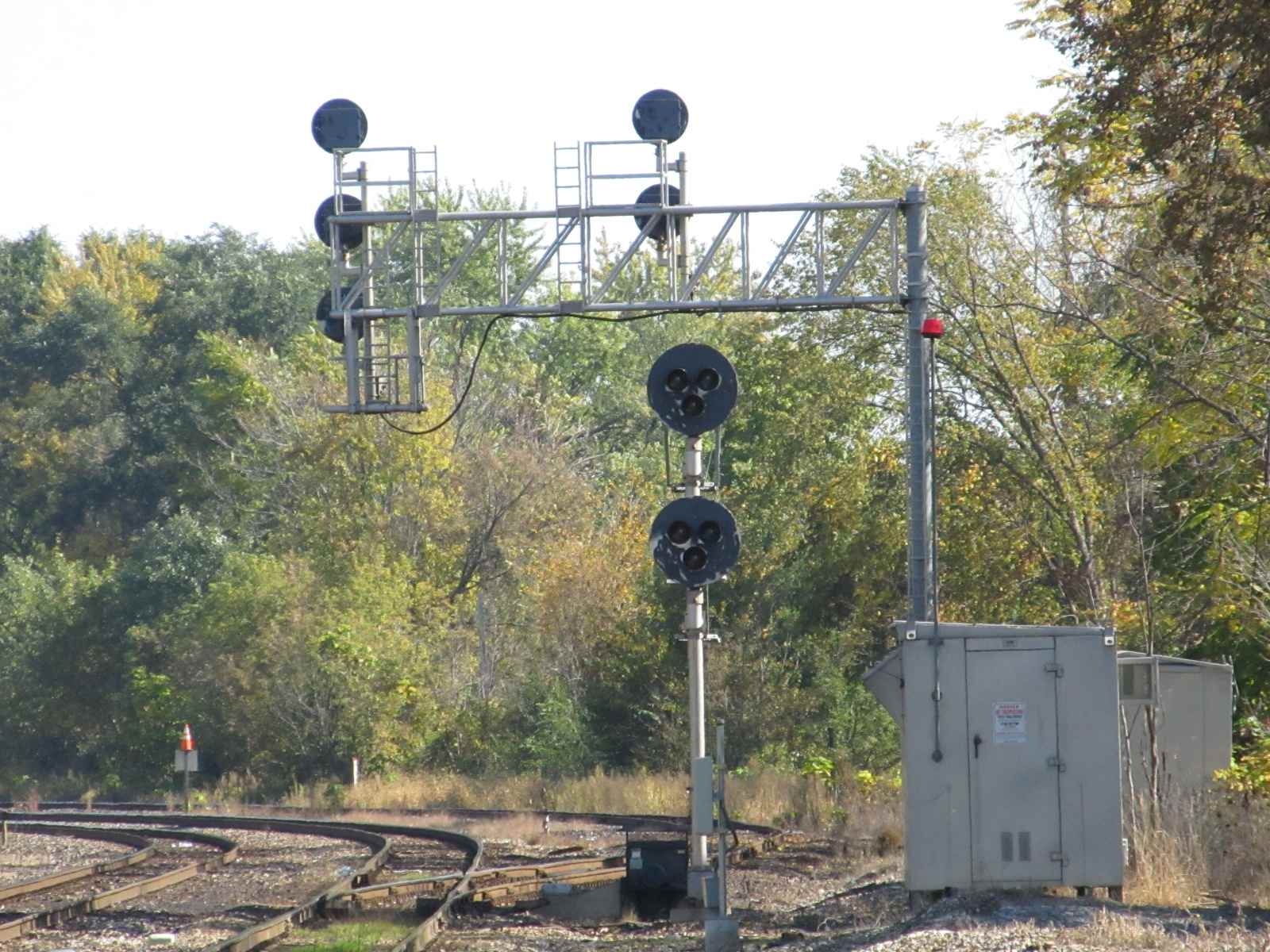 A new pair of signals for trains coming from Hinman Yard onto the mainline.