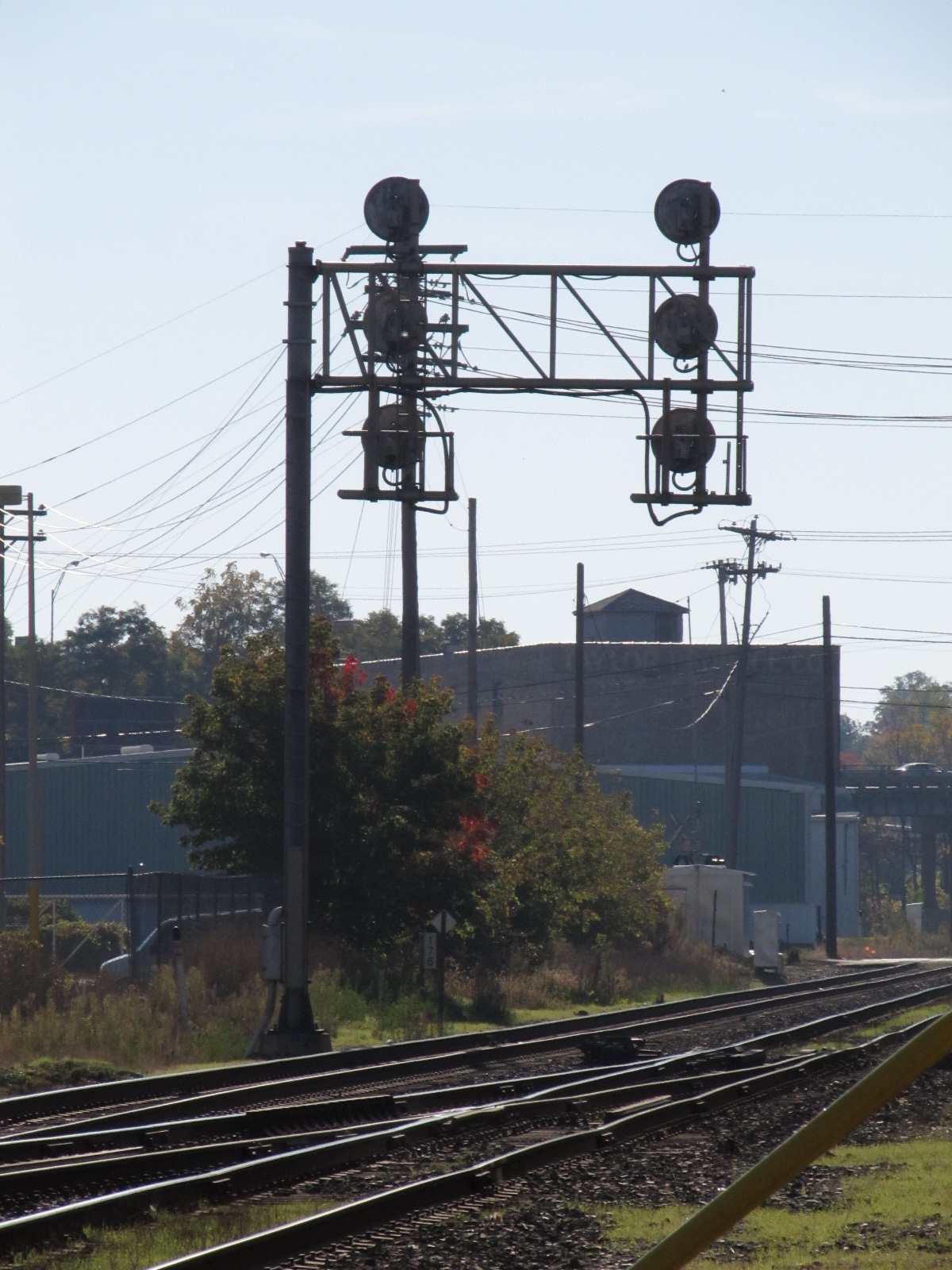 Almost all of the searchlight signals in town were mounted on cantilever bridges, as these are.