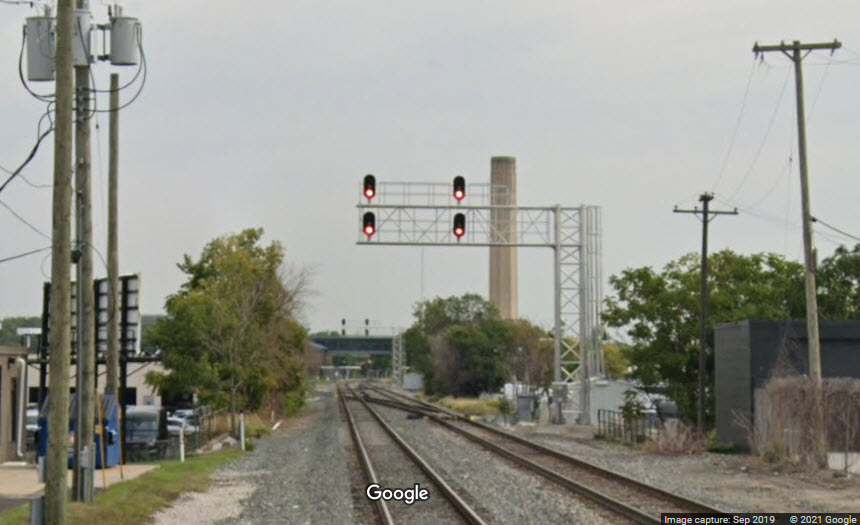 Streetview taken from the Monroe St grade crossing. Oakwood is right