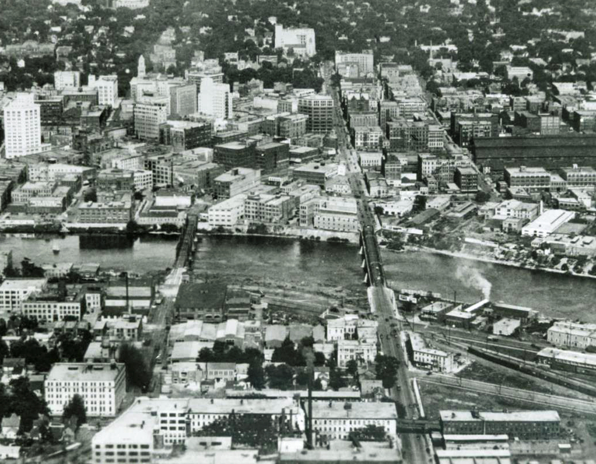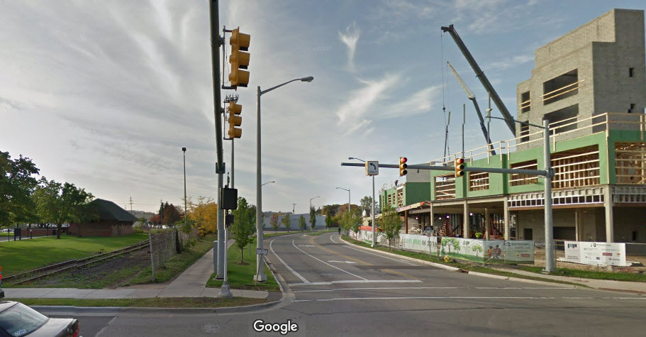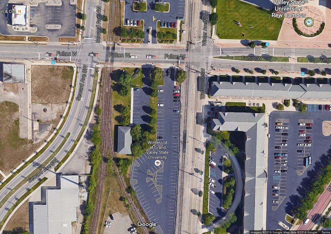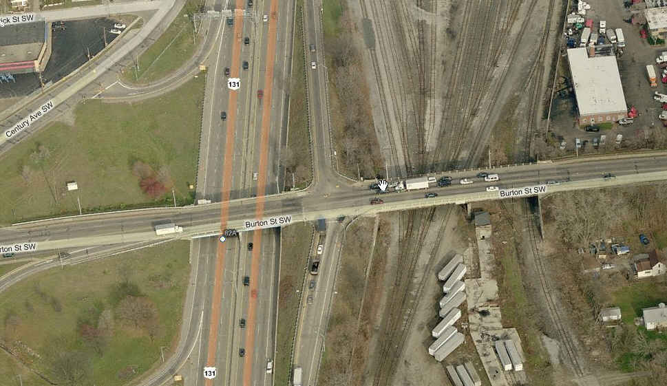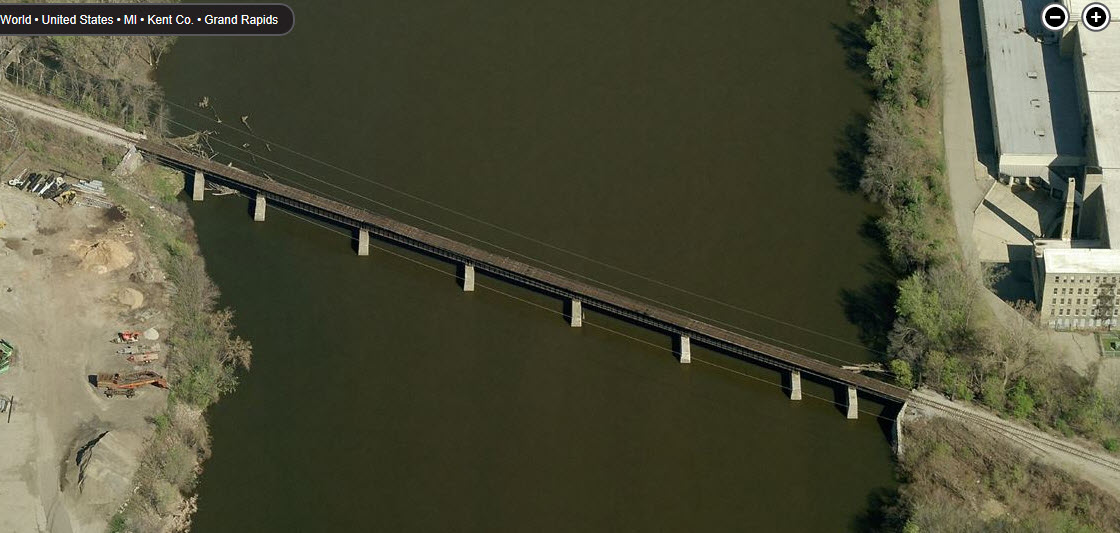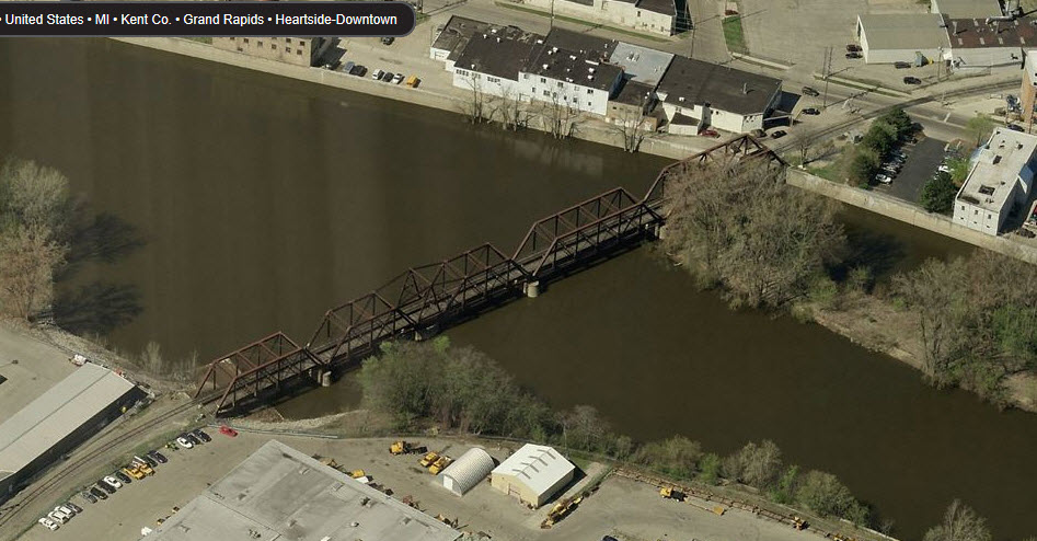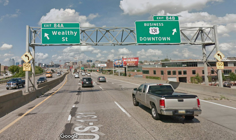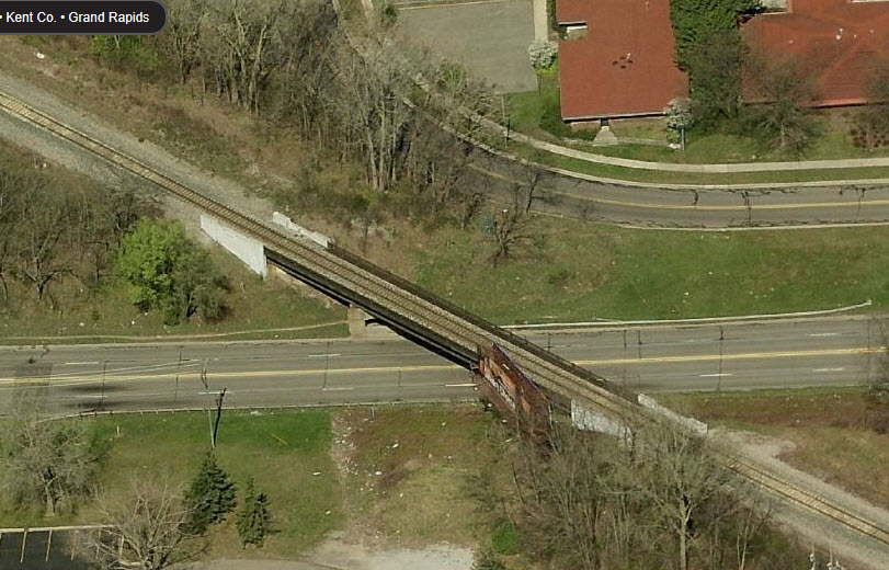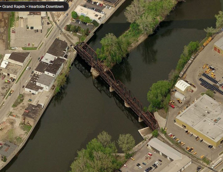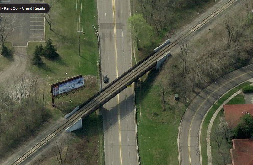 Wealthy St overpass, immediately south of the Rapid's Central Bus Station.