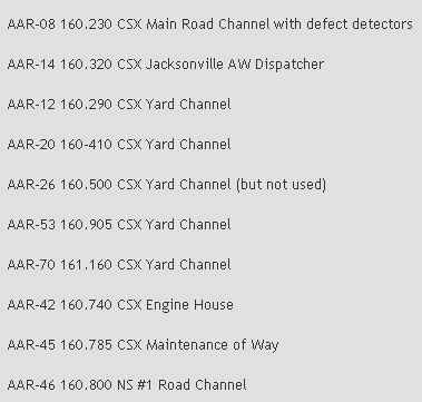 system wide on CSX. The 160.800 freq was a channel used by the Pennsy