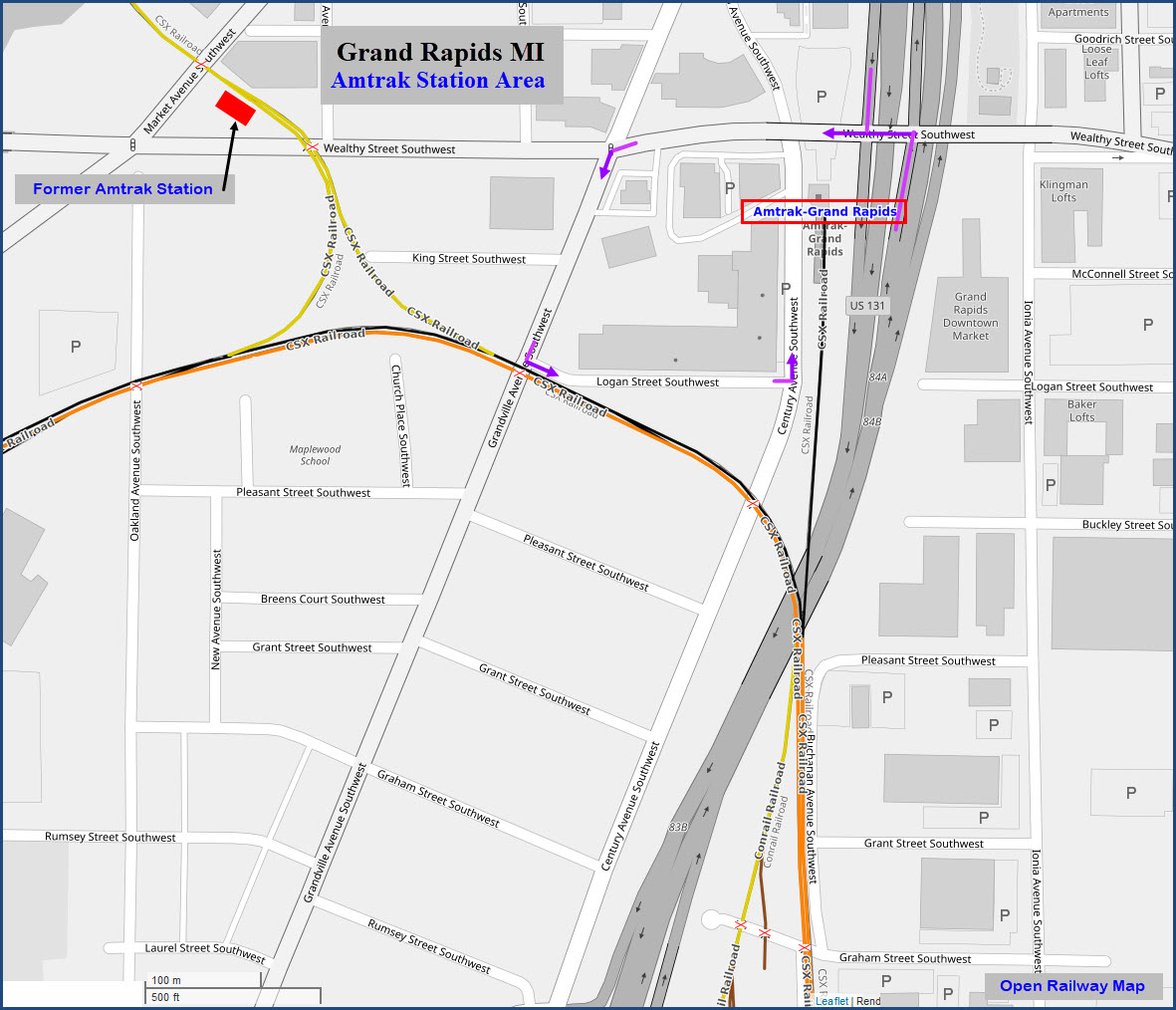 east of Grand Rapids, and has quite a few yards, an Amtrak station, and CSX,