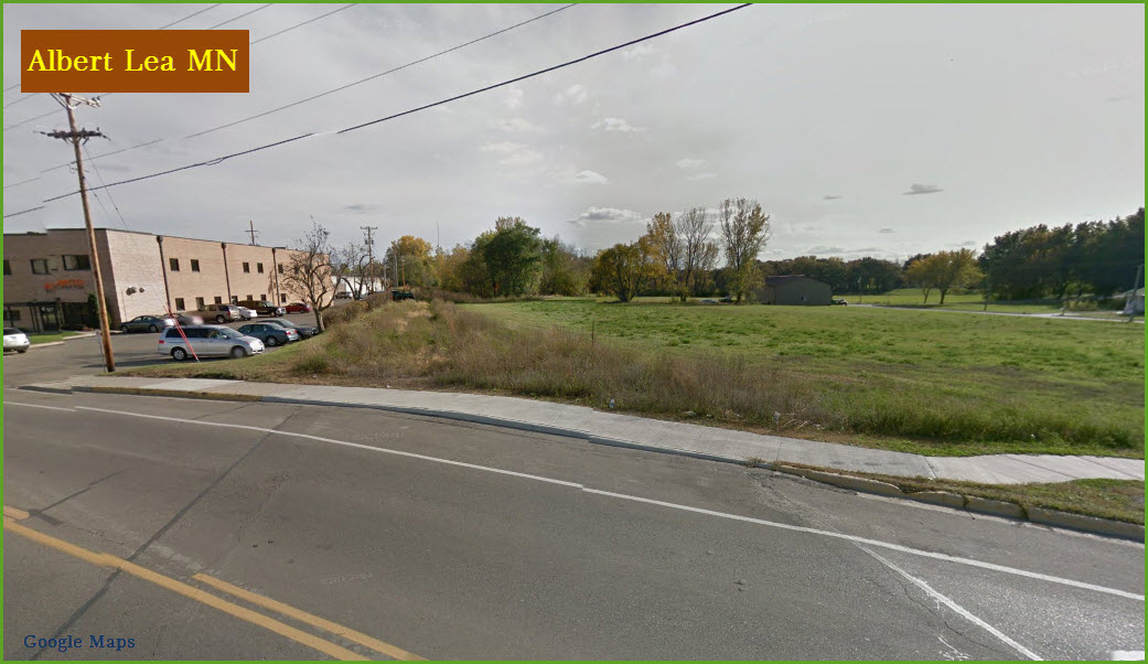 Out of the map services from Google, Bing, and Mapquest, Mapquest had the best satellite photos of Albert Lea when I originally did this page, but in 2013, Google has some terrific satellite photos of Albert Lea, as seen below. I left the Mapquest map here, because it labels the railroads!