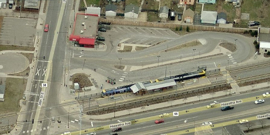 NB #108 at (I think) the 50th St Station, along Hiawatha Ave.