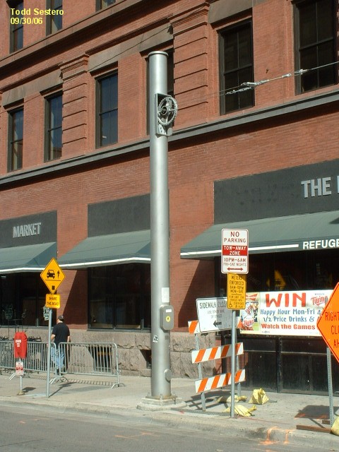 The designers of the Minneapolis Light Rail System choose to use mostly traditional transit system style signals. There are a few standard 3 color light signals around. A couple of them are by the shops, one on mainline, on in the yard on the back of the shops, another is located just south of downtown where the R-O-W crosses 62, and a forth one that I noticed was down near the Mall. The signals are manufactured by Safetran.