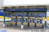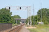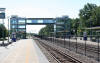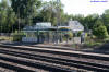 Below, the signals south of the station platform (1) for SB trains on a three track cantilever bridge, and a signal for trains coming out of the yard (2).