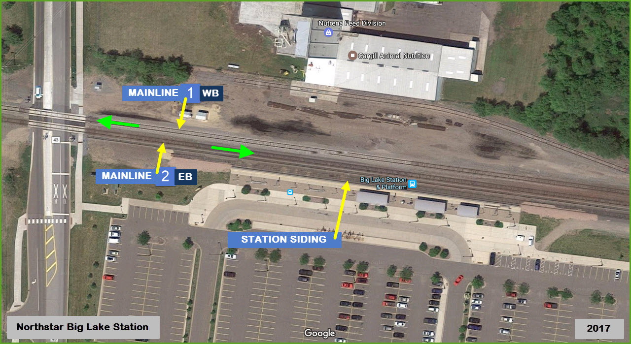 For the last 4.87 miles into the Big Lake station, all trains, NB and SB,