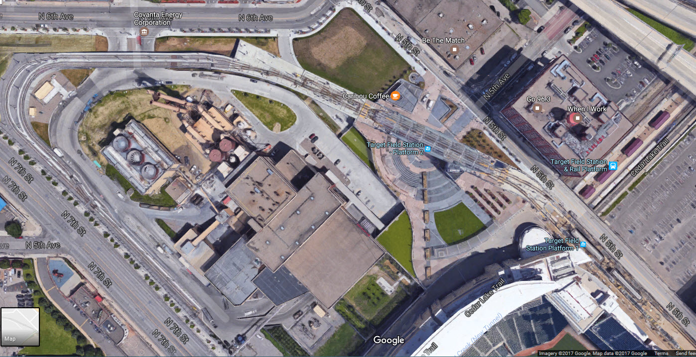 and the end of 2013! AND Mar2017!!!), Google wins in the aerial photo category, as Bing has not updated their fly-over pictures yet. The light rail station is right at the commuter rail station, and goes into a short