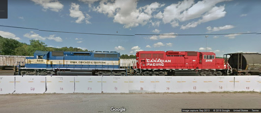 The Google Streetview camera captured these in 2013. Representative of what you can see from the north end of the yard, altho it looks like CP has put up concrete