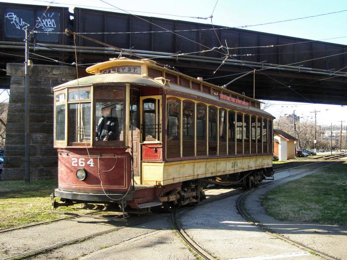 Horse Car, to Cable Car trailer, to Electric Car. Built in 1884, it's