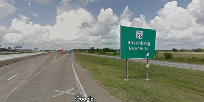 Get off at the exit for Rosenberg/Needville and state road 36.