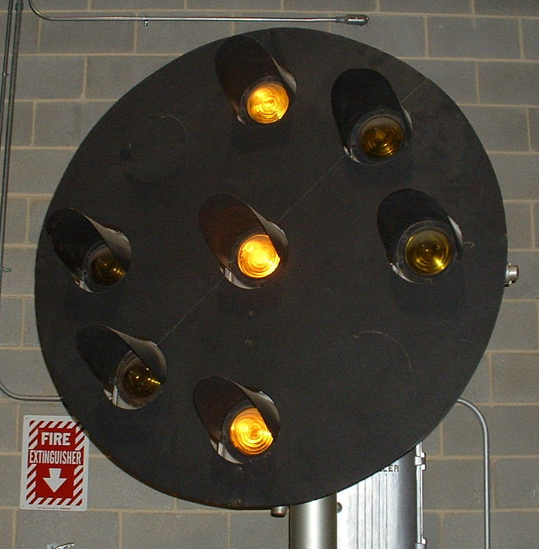 A B&O CPL signal, main head only, 3 aspect - missing the restrict aspect.