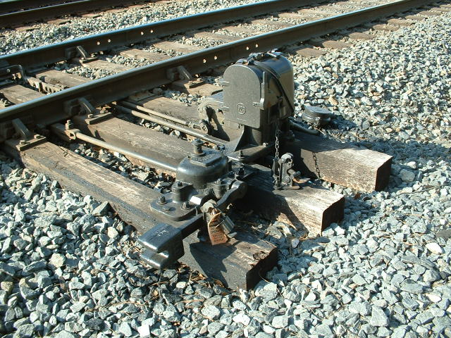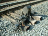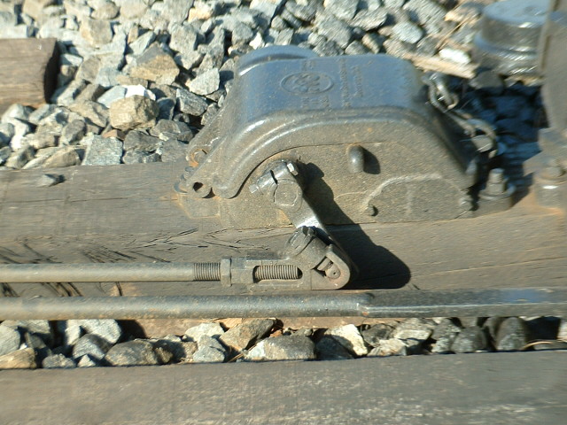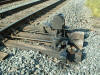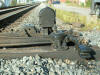 Derail and short piece of old C&NW rail still visible. Rail to the North has been removed.