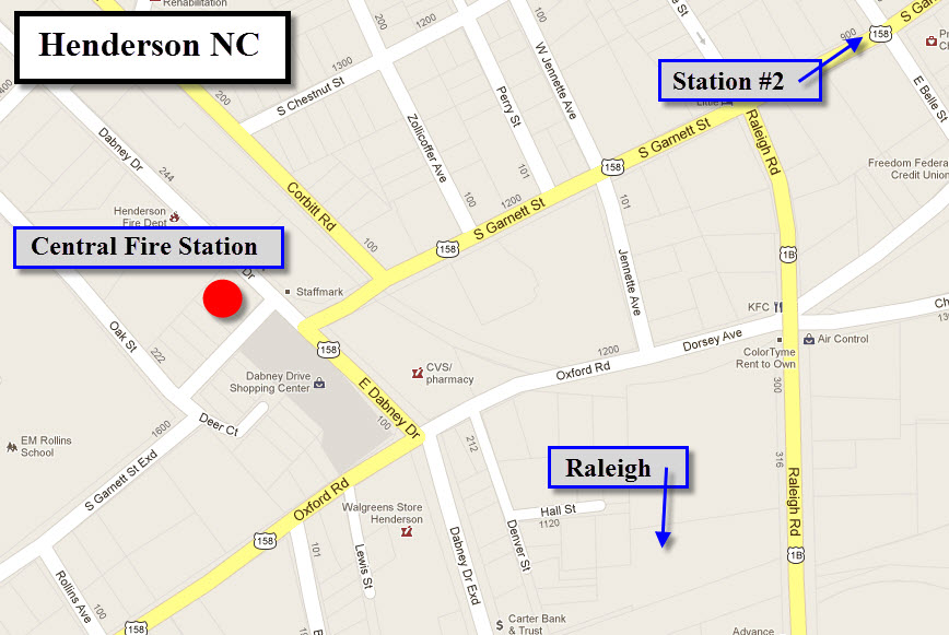 Henderson's best kept secret has nothing at all to do with railroading. Henderson is home to the oldest fire station in continuous use if North Carolina, Station #2, across from the former SCL railroad depot. I would like to thank Travis for a tour of Station #2. The Central Station is a little over a mile south down Garrett. where it tee's with Dabney Dr. As you come up to the intersection with Dabney, you can see the station across the street, just off to the right.