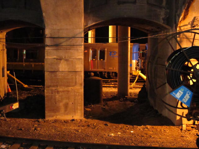 The Bloomfield presents the railfan with a little bit of interesting history, in that this is where the surface streetcar lines used to connect with the subway tracks and go into Penn Station. The yellow line in the middle photo is one of the connectors, partially seen in the upper photo. In the bottom photo, the path is overgrown with brush.