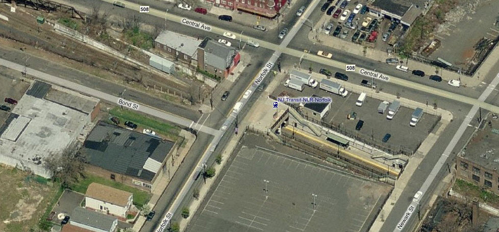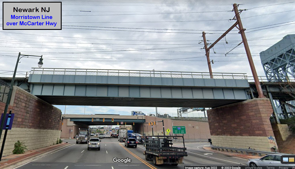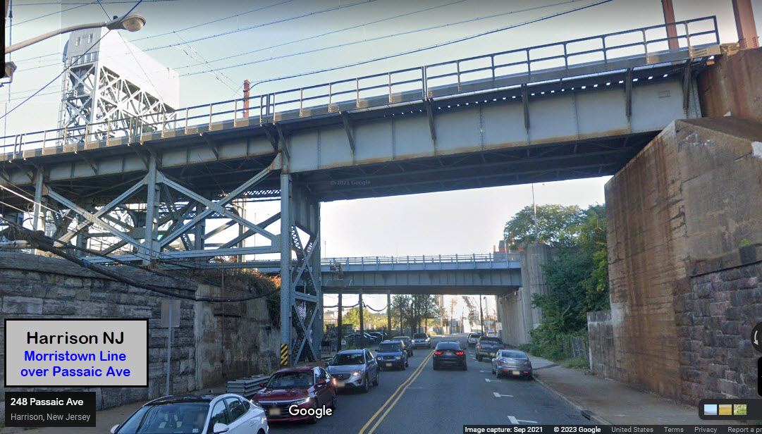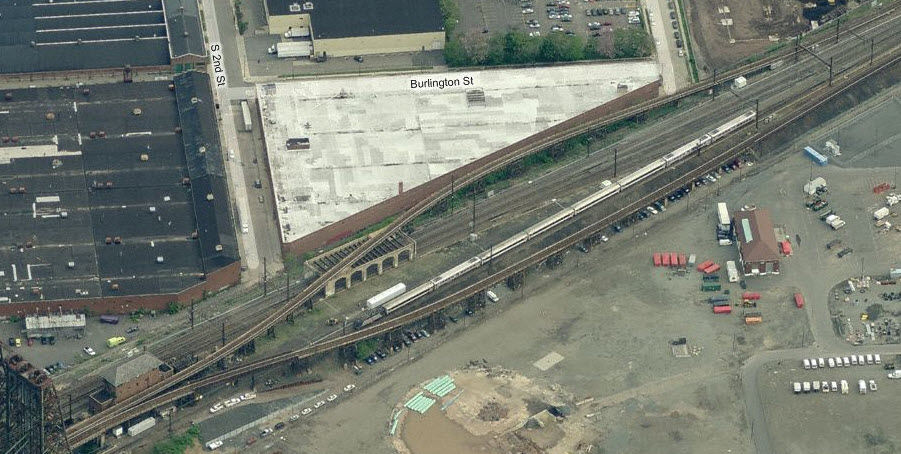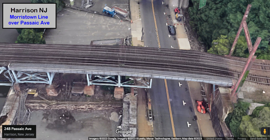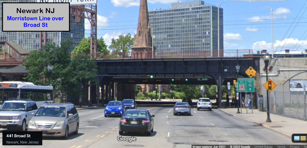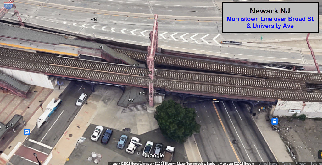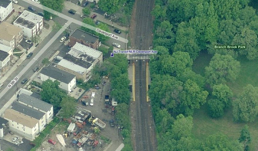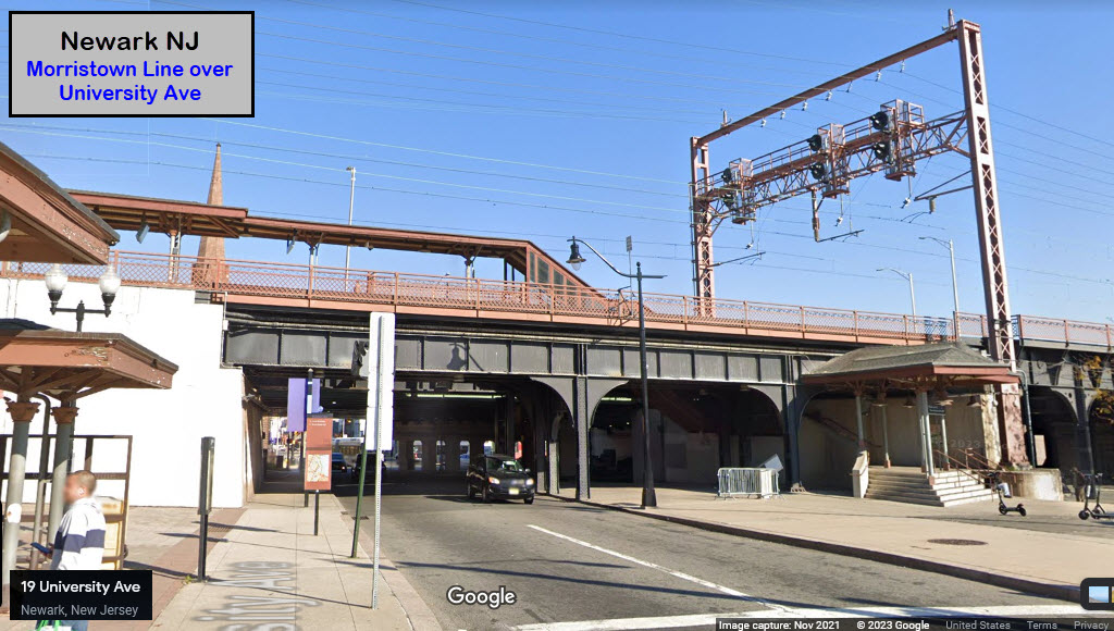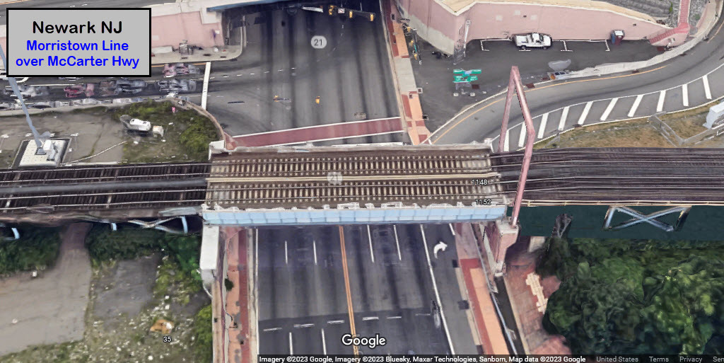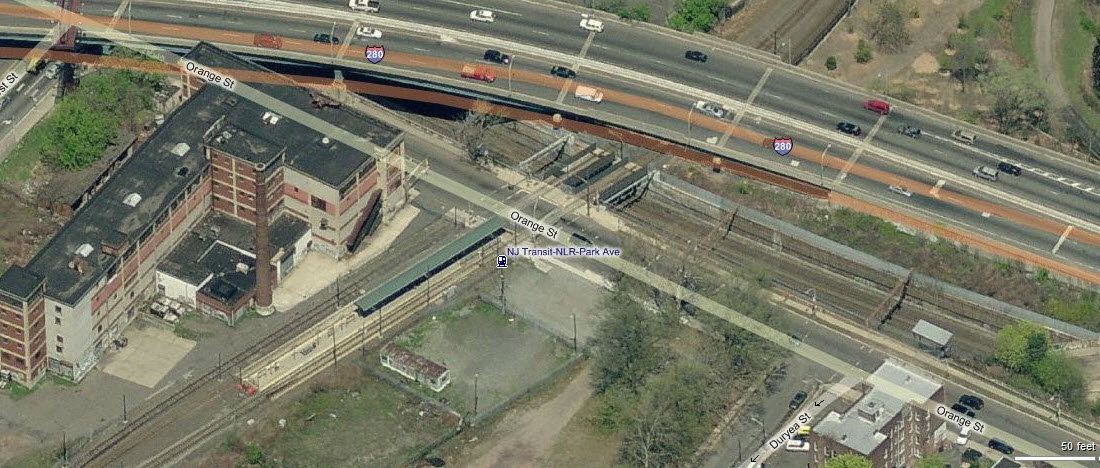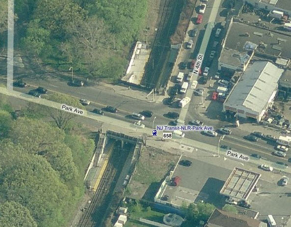 Notice Bing has this station incorrectly labeled as Park Ave. The 3 track Morristown line is in the cut under the light rail line.
