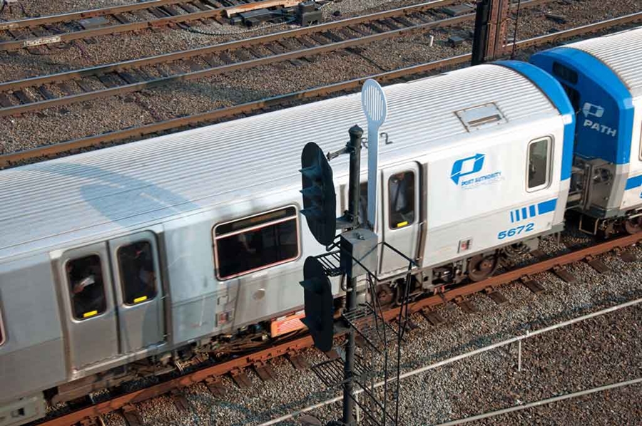 2) Closest to the river are the PATH tracks, easily identified by the shiny 3rd rail cover....