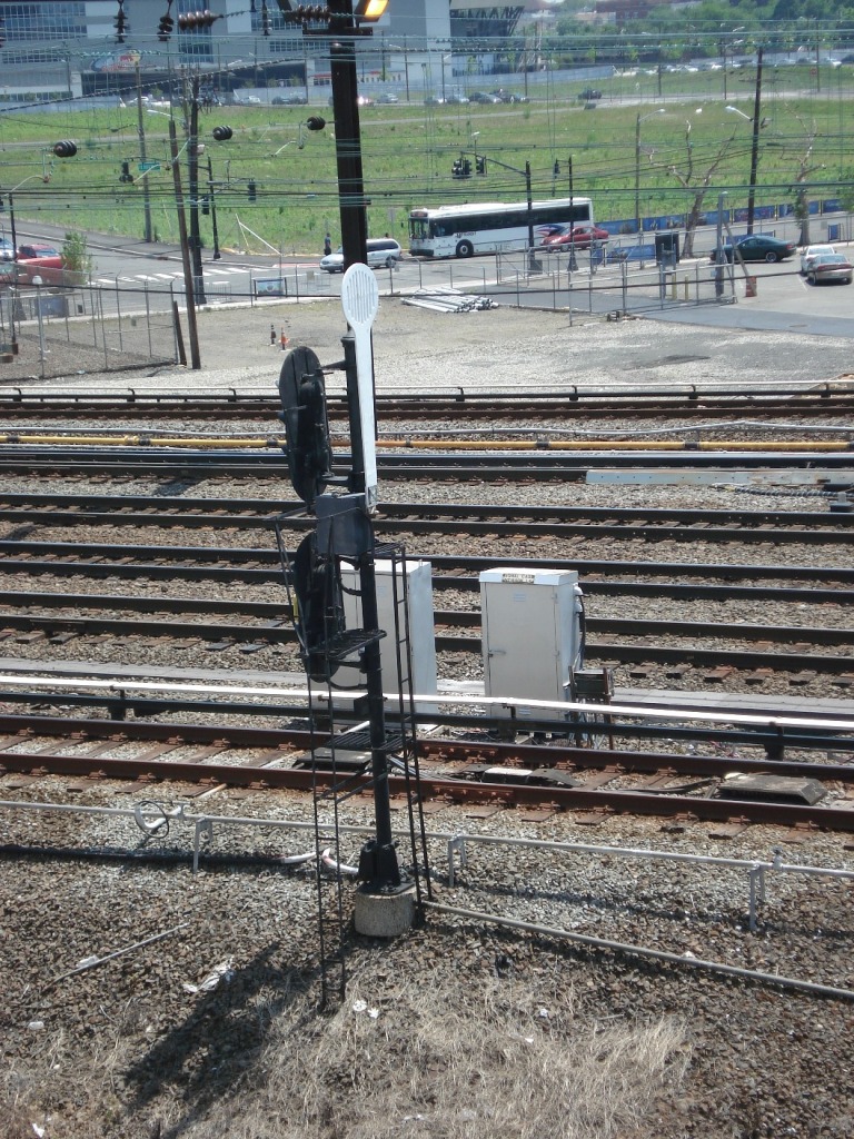 The above photo, "Snagged" from Harrison, shows a few interesting details of the tracks approaching Newark's Penn station from the north side......