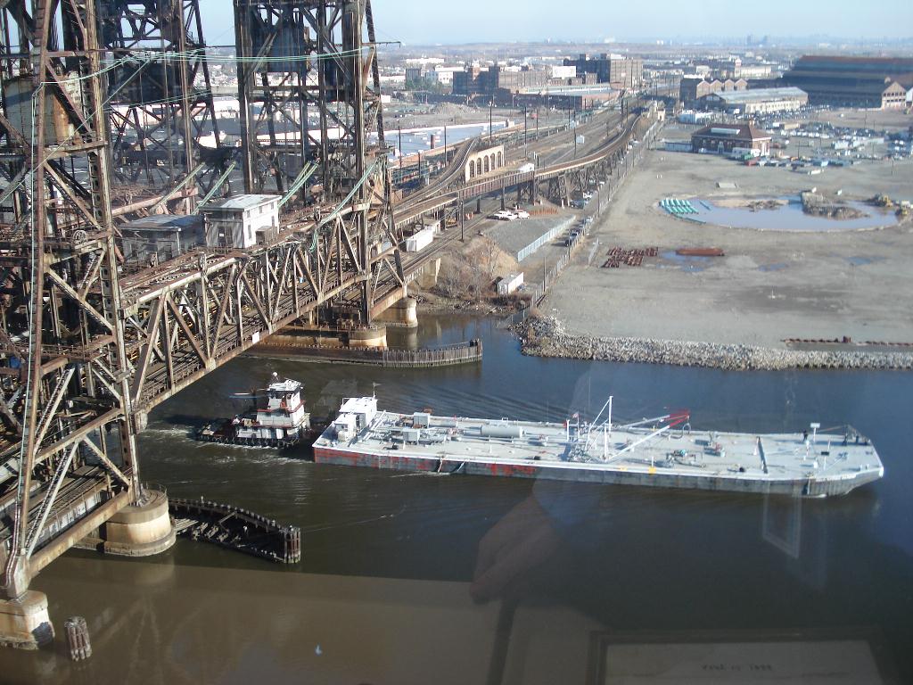 Nice example of this type of bridge, obviously not used any more. The last commuter train to ramble over this branch was in October of 1966, and the last time a freight went over this bridge was in December of 1977. A day shift operator was assigned to the bridge Monday through Friday... after the last train came through, he was given another assignment, and the bridge has been open ever since. The bridge sat intact through the winter, but once warm weather set in, and kids found out that trains weren't using it and an attendant was no longer on duty, vandalism set in. The bridge is a double track bridge, but the bridge and branch were single tracked in the early 60's. The branch itself was always single track west of the 4th St station in Newark. In 1982, the bridge was used in a scene of the movie Annie (more info at http://www.hingepepper.com/anniemovie.htm ). (Thanks to Rich's friend Ken for this info!) The line east of the bridge has been out of service since 2002. On the west side of the bridge, the last customer using rail service recently closed, and as of this writing (June 2011), the track has not been used for several months. The track is the former Erie RR's Newark Branch.