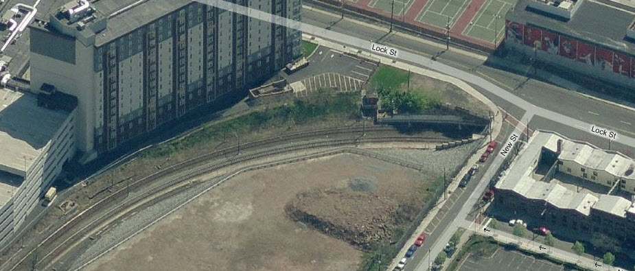3) Then we have the Conrail Center Street Branch freight track in "front" of the retaining wall....