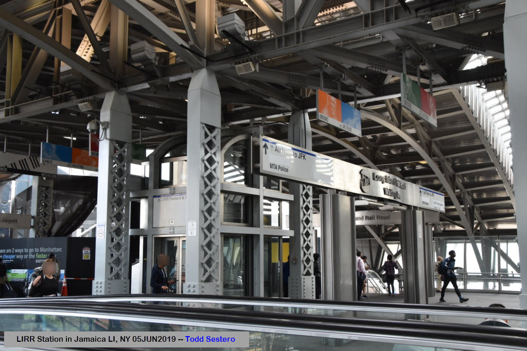 concourse above the LIRR platforms connects to a station on the AirTrain JFK elevated people mover to JFK Airport, which contains