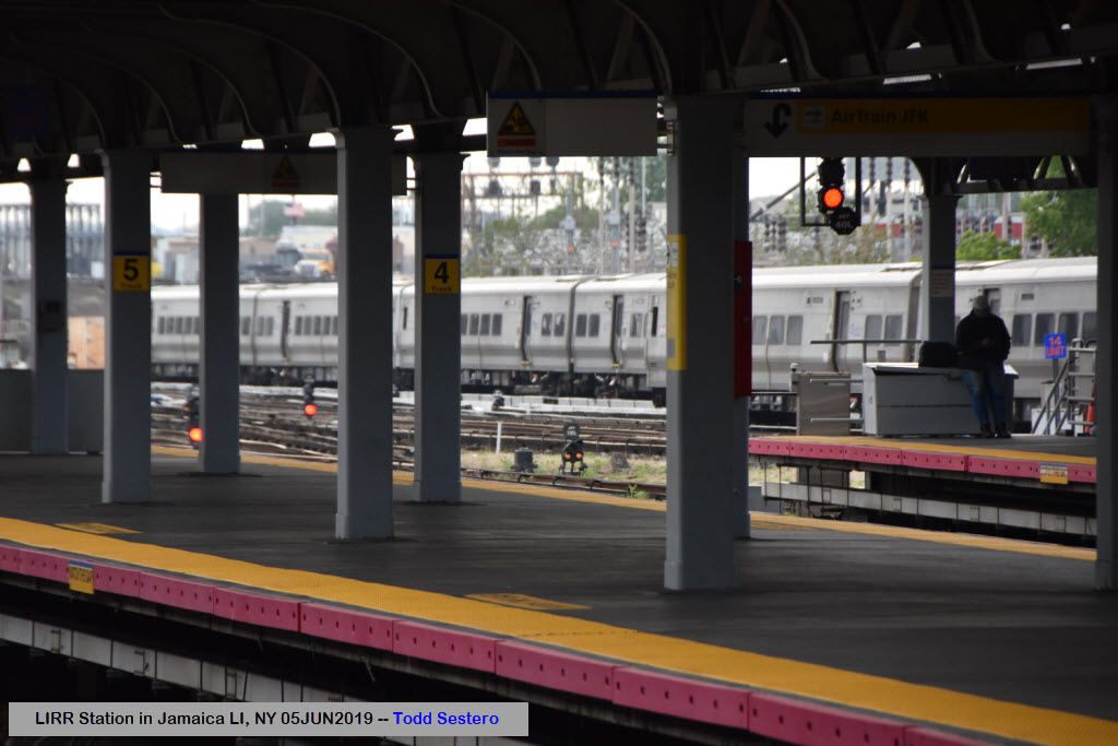 to arrive at Jamaica simultaneously on tracks 1, 2, and 3. Passengers