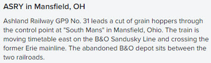 For preserved depot and interlocking fans, south of Bucyrus on OH-4 is restored