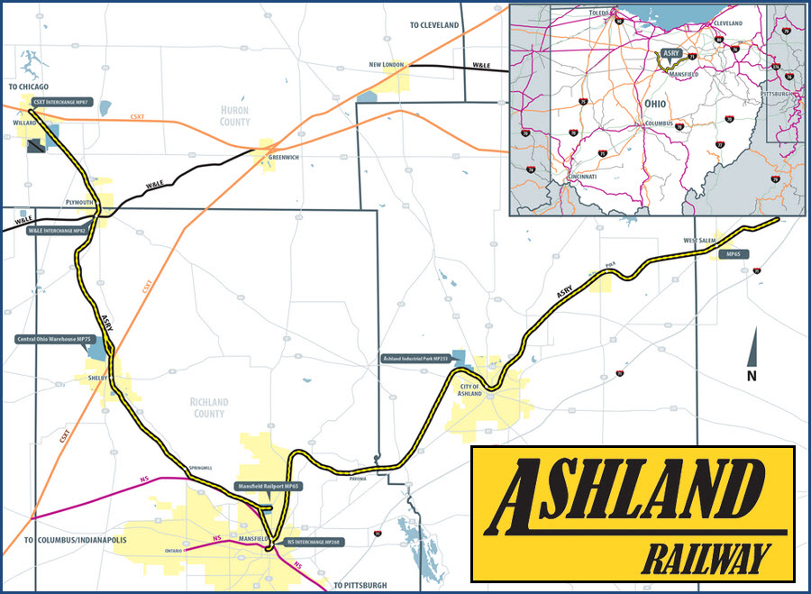 mile (90.9 km) Ashland Railway (1986). A spur of the abandoned Erie Railroad leads