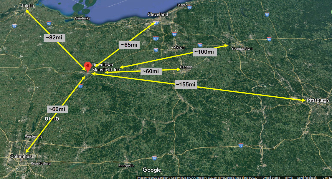 tuned northwest to go thru Mansfield, then headed west towards Crestline.