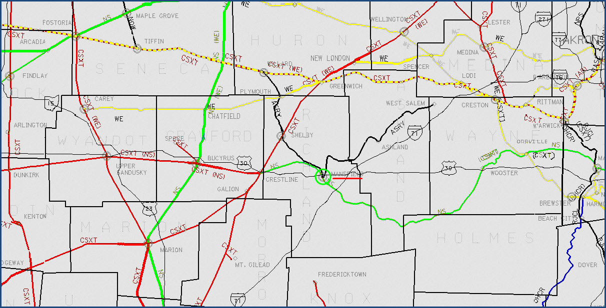 Mansfield. The line extends to a yard west of Lexington-Springmill Road