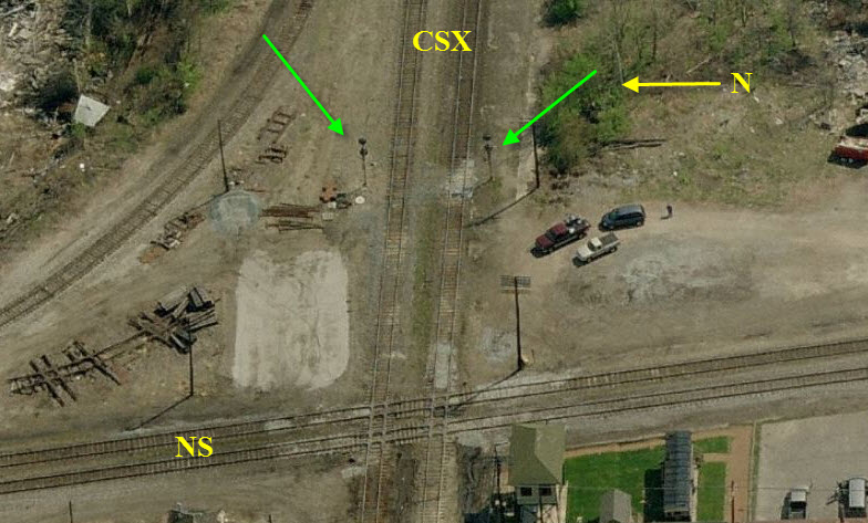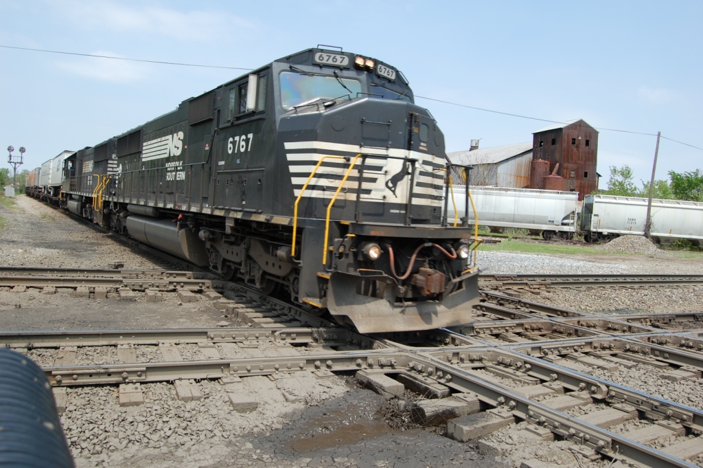 NS 6767 heading up a freight crossing the east diamond between the Norfolk Southern and CSX.