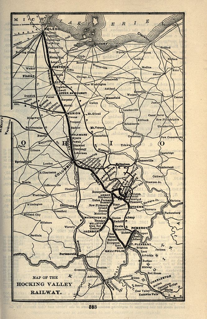 The earliest predecessor of the Hocking Valley was the Mineral Railroad, incorporated in April 1864 to build from Athens in the rich Hocking Valley