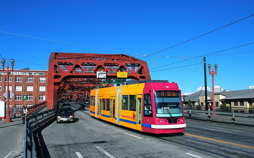 Here is the bridge shown with a MAX Light Rail car and a Portland Streetcar crossing it.