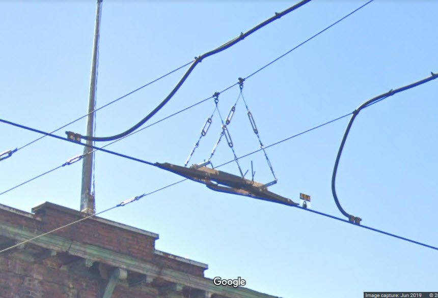 Green/Yellow line in downtown, with close-ups of the feeder on the pole, and the