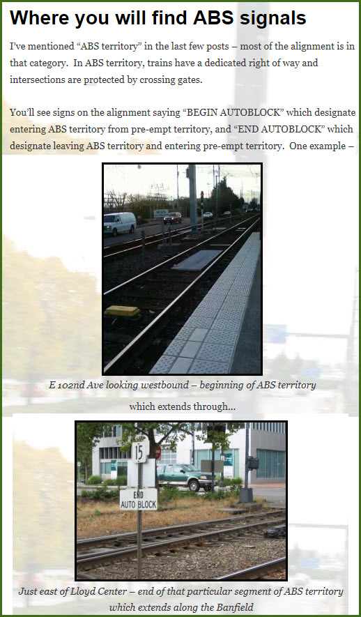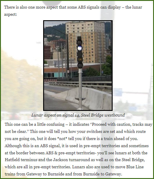 Also from the TriMet Brochure... Block signal system and ATS: Where operating