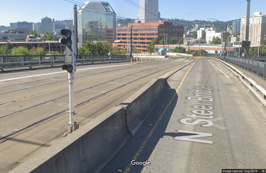 the bridge, headed towards Portland and the Steel Bridge. Picture taken by