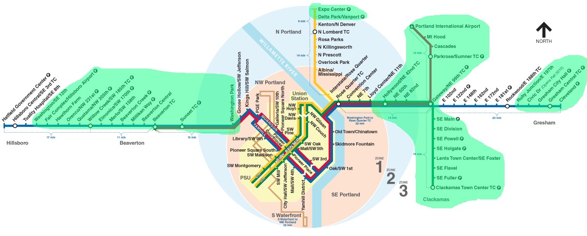 The Blue Line was expanded west in 1998 to downtown Hillsboro, after a massive tunneling project.