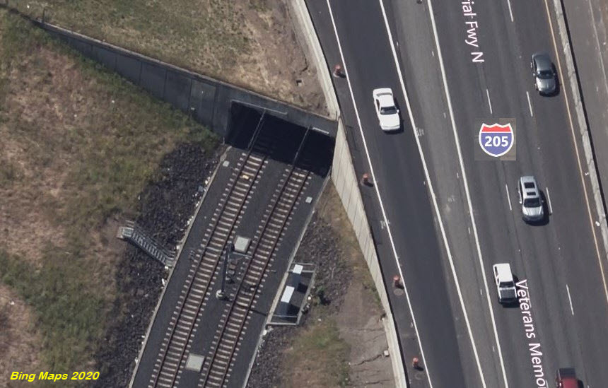 The R-O-W leaves Gateway on the east side of Interstate 205, then, between SE Market