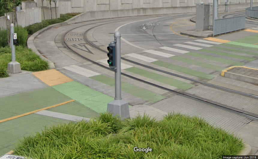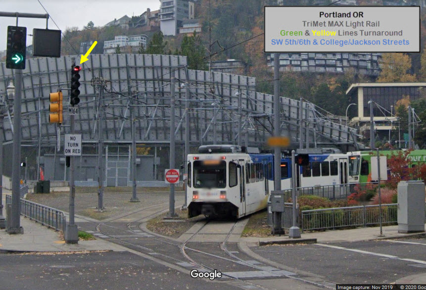 at this interlocking, it happens on the "far" side of the Waterfront/Moody